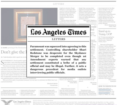 Paramount was squeezed into agreeing to this settlement. Controlling shareholder Shari Redstone was desperate for the Skydance merger to be completed even though 1st Amendment experts warned that any settlement consistuted a bribe of a public official and may be illegal. Further, it sets a dangerious precedent for media outlets interviewing public officials.